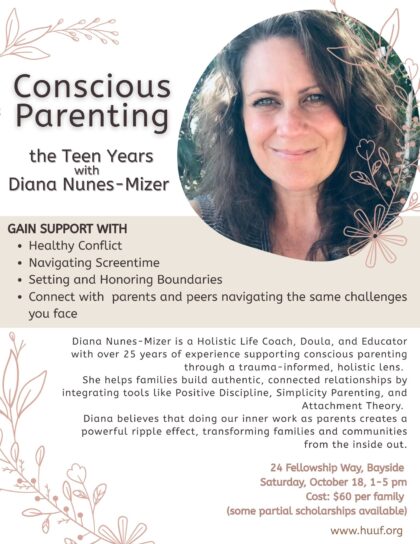 Diana brings years of teaching and facilitation experience to her workshops. In addition to the 4-hour session, she offers follow-up support for the group as a whole. Thanks to her generosity and the support of the Humboldt UU Fellowship, we are able to offer this workshop—normally valued at over $150—at a significantly reduced rate.